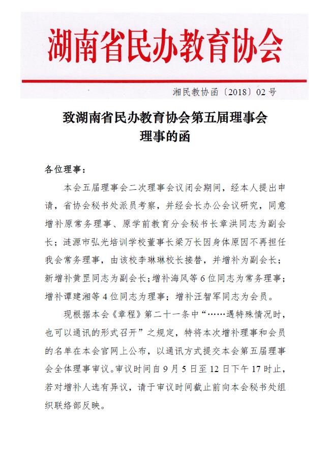 致湖南省民辦教育協(xié)會第五屆理事會理事的函