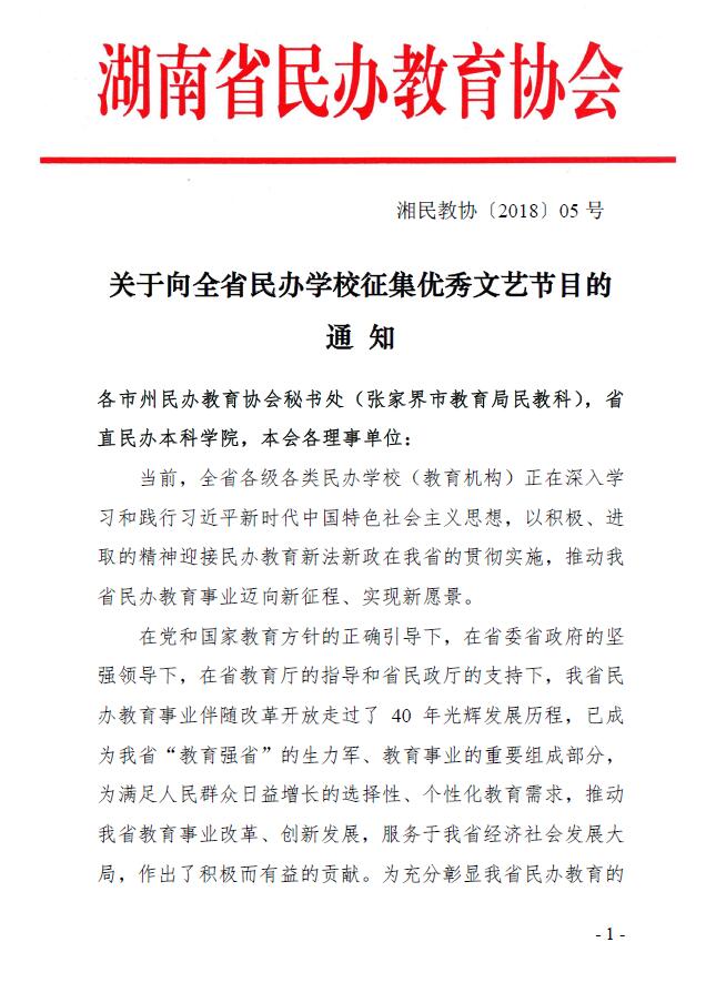關于向全省民辦學校征集優(yōu)秀文藝節(jié)目的通知