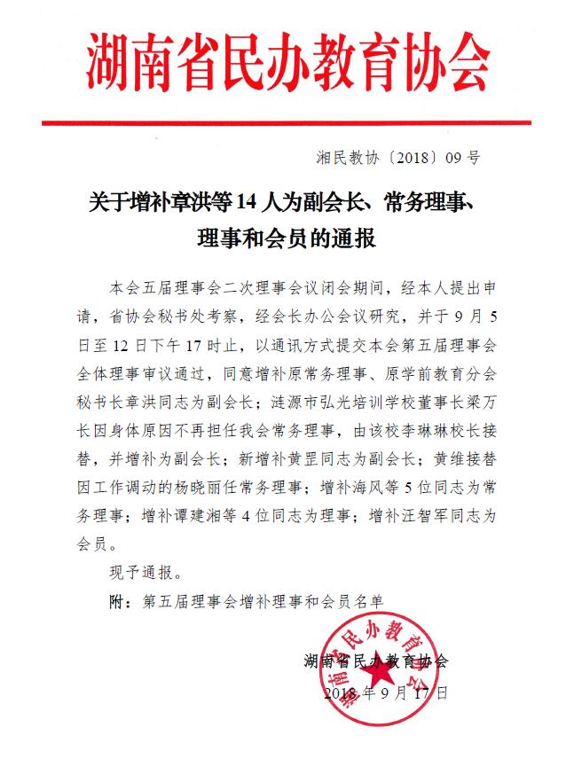 關于增補章洪等14人為副會長、常務理事、理事和會員的通報