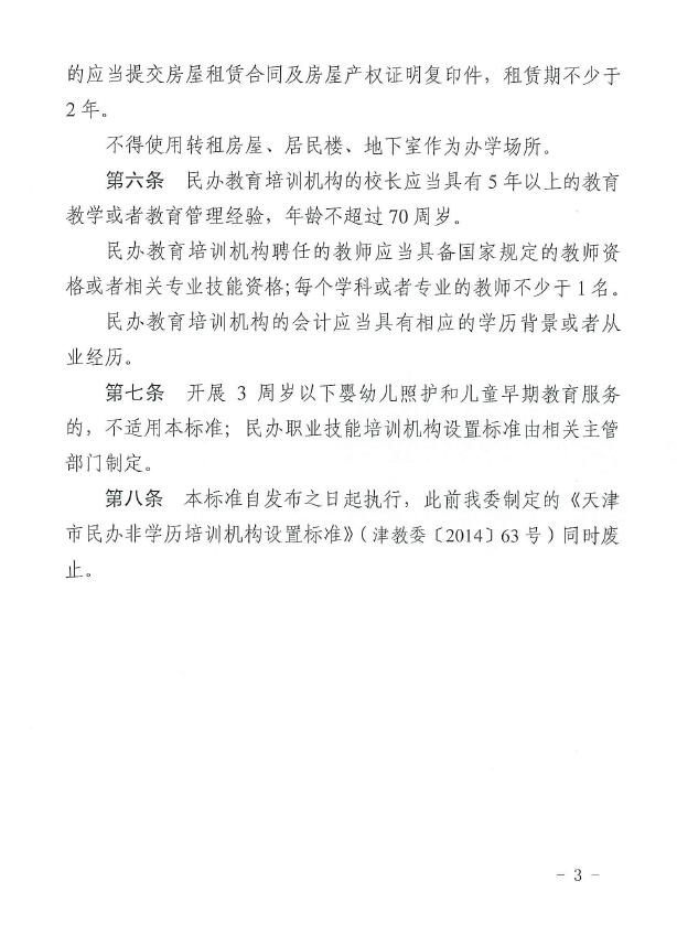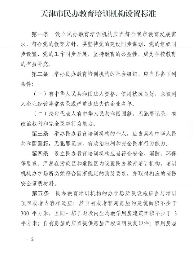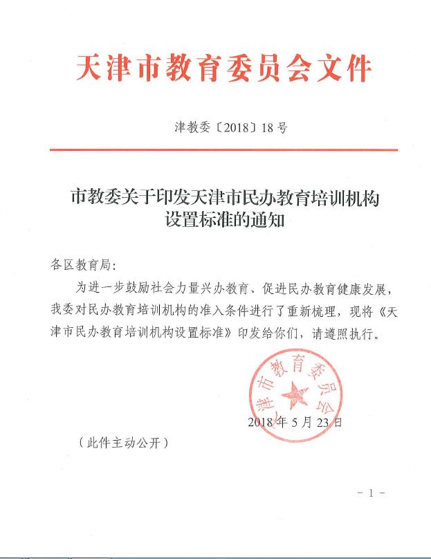 天津市教委關(guān)于印發(fā)天津市民辦教育培訓(xùn)機構(gòu)設(shè)置標(biāo)準(zhǔn)的通知