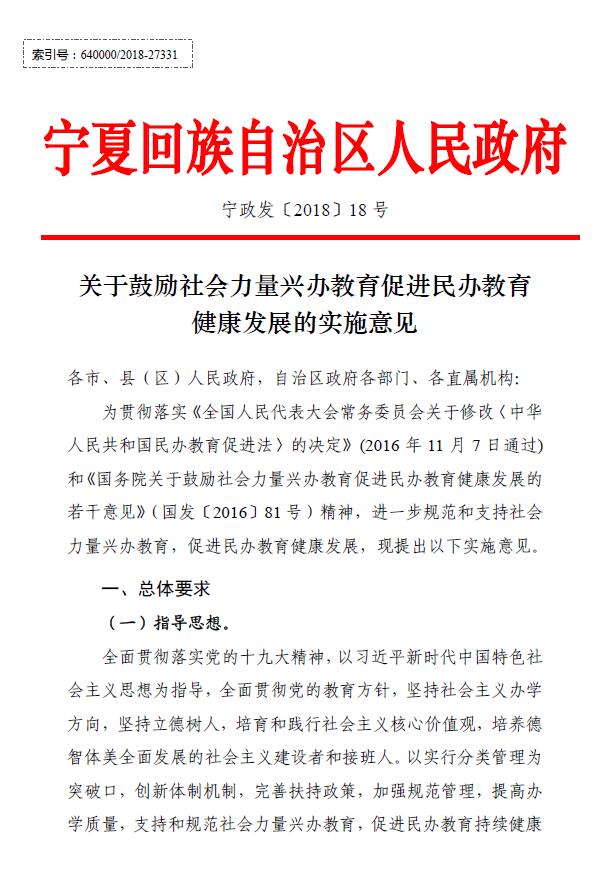 寧夏回族自治區(qū)人民政府關于鼓勵社會力量興辦教育促進民辦教育健康發(fā)展的實施意見