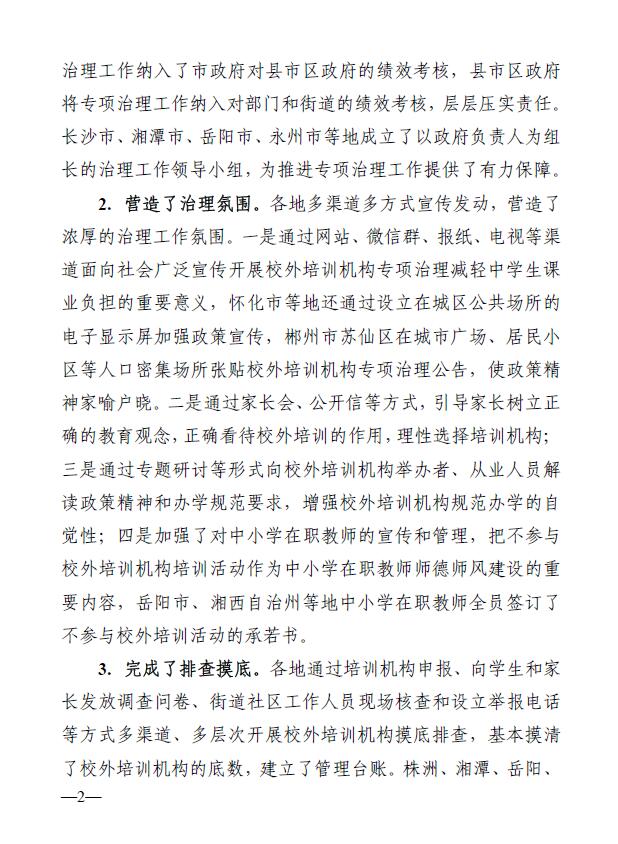 湖南省教育廳辦公室關(guān)于全省校外培訓(xùn)機構(gòu)專項治理工作督查情況的通報