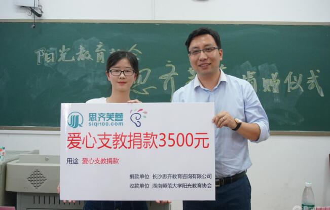 6月14日下午,湖南師范大學(xué)陽光教育協(xié)會在理學(xué)院325舉辦了“陽光攜手思齊芙蓉愛心支教捐贈”儀式。