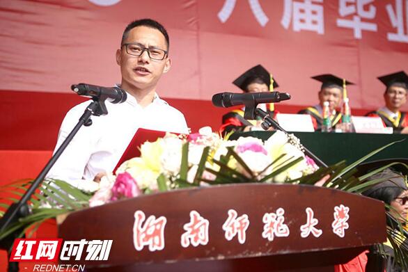李章系湖南師范大學(xué)數(shù)學(xué)與計(jì)算機(jī)科學(xué)學(xué)院2004屆本科畢業(yè)生、2010屆碩士畢業(yè)生、思齊教育集團(tuán)董事長。他深情回憶了與師大的18年緣分,與同學(xué)們分享了自己畢業(yè)后的創(chuàng)業(yè)經(jīng)歷與心路成長歷程,激勵(lì)同學(xué)們走上社會(huì)要勇敢面對(duì)失意的境況,永遠(yuǎn)不忘跟隨人生路上的兩個(gè)指路牌—理想和感恩。他表示人生的每一個(gè)節(jié)點(diǎn)都是新的起點(diǎn),希望畢業(yè)生們能夠以此為起點(diǎn)走得更遠(yuǎn),不忘初心,感恩前行。