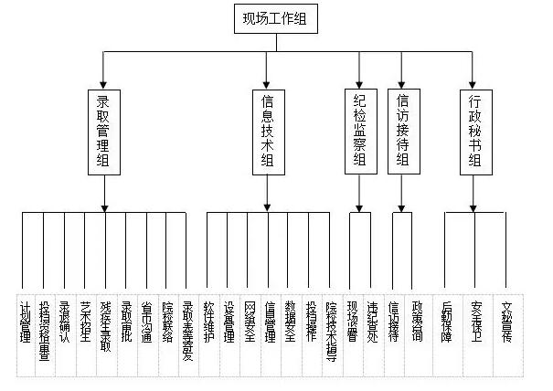 各工作組要針對(duì)錄取過程中可能出現(xiàn)的各種情況和問題,制定應(yīng)急預(yù)案,確保一旦出現(xiàn)異常情況和突發(fā)問題能快速反應(yīng)、妥善處置。在遇到突發(fā)問題時(shí)必須第一時(shí)間逐級(jí)上報(bào),并在錄取現(xiàn)場(chǎng)協(xié)調(diào)處置小組統(tǒng)一指揮下啟動(dòng)應(yīng)急預(yù)案,采取緊急措施。