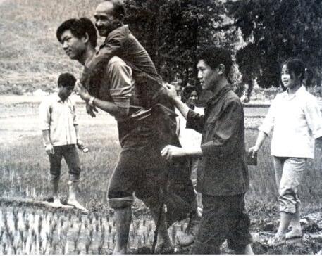 農(nóng)林系譚滌教授行走不便,由學(xué)生背到田間授課。(資料照片)